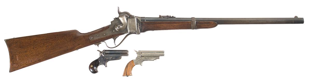 Two Sharps Pepperbox Pistols And A Sharps Carbine