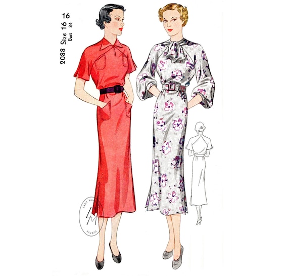 1930s 30 Dress Vintage Sewing Pattern Reproduction 2 Styles Etsy