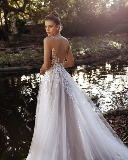 Sodigne Dubai Wedding Dresses 2023 For Women Lace Appliques Sexy Backless V Neck Bridal Gowns Boho Tulle Bride Dress Party Aliexpress